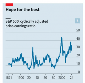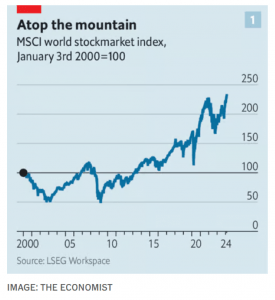 The Economist doesn’t think that valuations can go much higher, or that profits can take a bigger share of the economy.