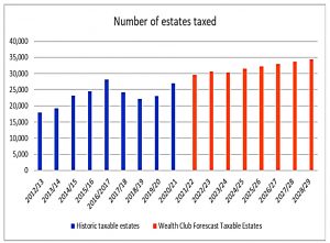 Although the chart doesn’t show it clearly, the number of taxable estates is rising – up 17% in 2020-21.