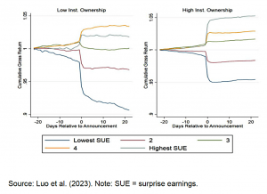 The stocks with the lowest earnings surprise and high institutional ownership show no negative post-earnings announcement drift.