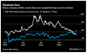 Hotels and cruise lines gained 66%, whilst vaccine-makers lost 46%.