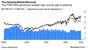 UK PEs are much now lower than the S&P 500, even when the Magnificent 7 tech stocks are excluded.