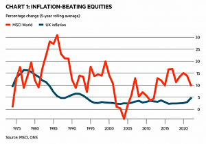 In the 53 years to the end of 2022, total returns from global equities grew at 10.8 per cent a year (and even UK equities managed 10.4 per cent) while UK inflation rose at 5.2 per cent.