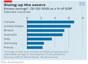 - Consumers across 21 rich countries saved $6 trn in the first nine months of 2020, rather than the expected $3 trn.