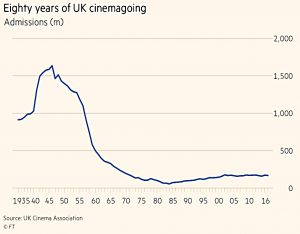 We begin today’s Weekly Roundup in the FT, with the Chart That Tells A Story. This week it was about cinema attendances.